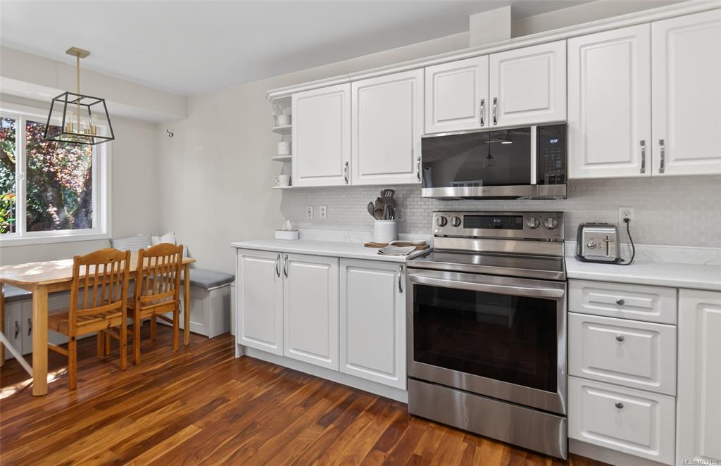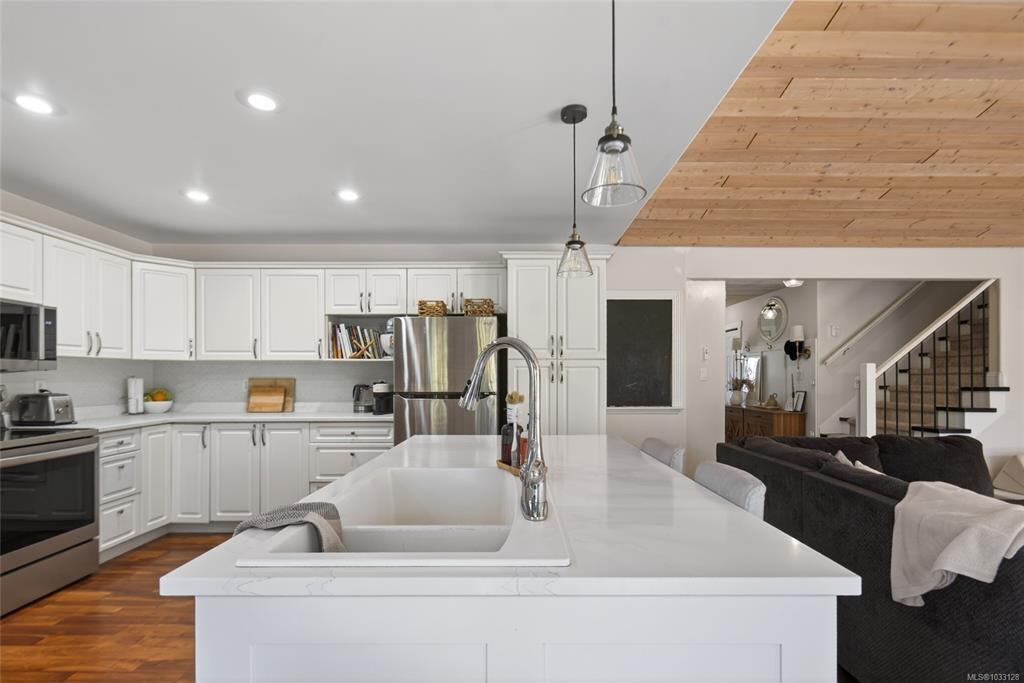 Welcome to this 1964sqft home offering a bright, functional layout. The open-concept is ideal for everyday living and entertaining, featuring a spacious kitchen with an eat-at island, and a dining area with cozy banquette seating. The living room is warm and inviting with a vaulted pine plank ceiling and natural gas stove, and opens onto the deck for seamless indoor-outdoor living. A primary bedroom with ensuite, 2 more bedrooms, a full bath, and laundry finish off the main level. Upstairs, a large open area provides flexible space for a playroom, home office, or studio. Outside, the fenced backyard includes raised garden beds and a deck, with more garden space in the front yard. Additional features include a single-car garage, crawl space with sump pump, and recent updates such as a new NG hot water tank, new baseboard heaters, and new carpet on the stairs and in the upper-level. Conveniently located close to town, with parks, walking trails, and recreation right at your doorstep.