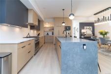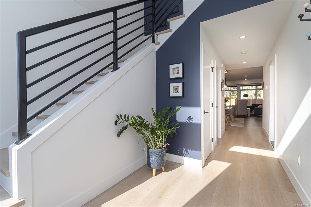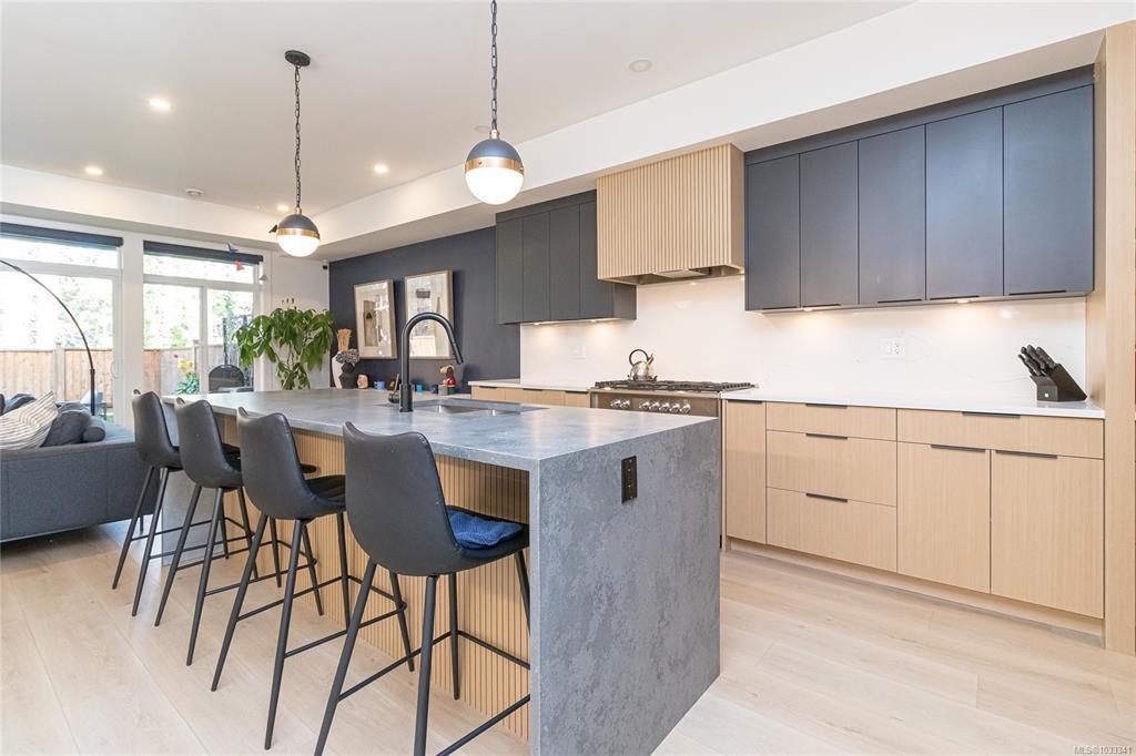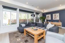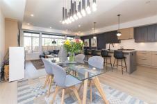Built Green 2023 home in a desirable location, offering over 2,000 sq ft of modern living with 4 bedrooms and 3 bathrooms deal for those seeking a newer home with style . The designer kitchen features black and maple two-tone cabinetry, matte black hardware, quartz waterfall island, and a premium Fisher & Paykel appliance package including a built-in coffee maker, plus a spacious walk-in pantry. The open-concept main floor is perfect for entertaining, complete with a feature electric fireplace, custom millwork, dining area, and access to a private backyard backing onto green space perfect for relaxing or outdoor living.Upstairs offers 4 well-sized bedrooms including a primary suite with walk-in closet and spa-inspired ensuite featuring a stand-alone soaker tub, walk-in shower, and double vanity. Additional highlights include upper-level laundry with built-in storage and electric blackout blinds. A move-in ready, energy-efficient family home close to parks, schools, and amenities .