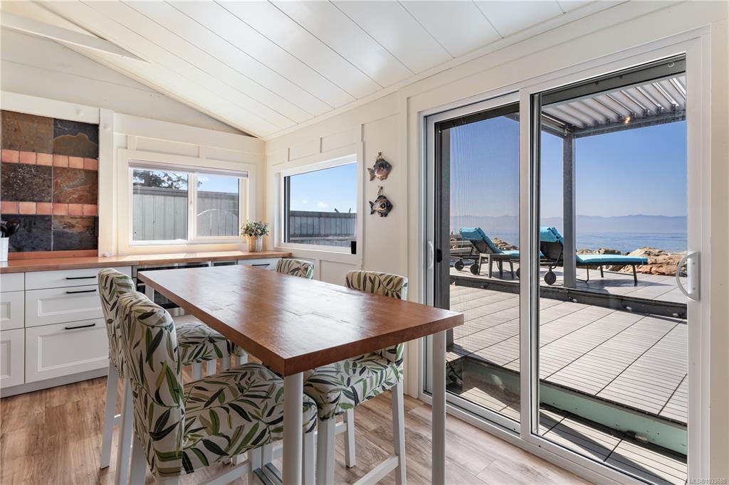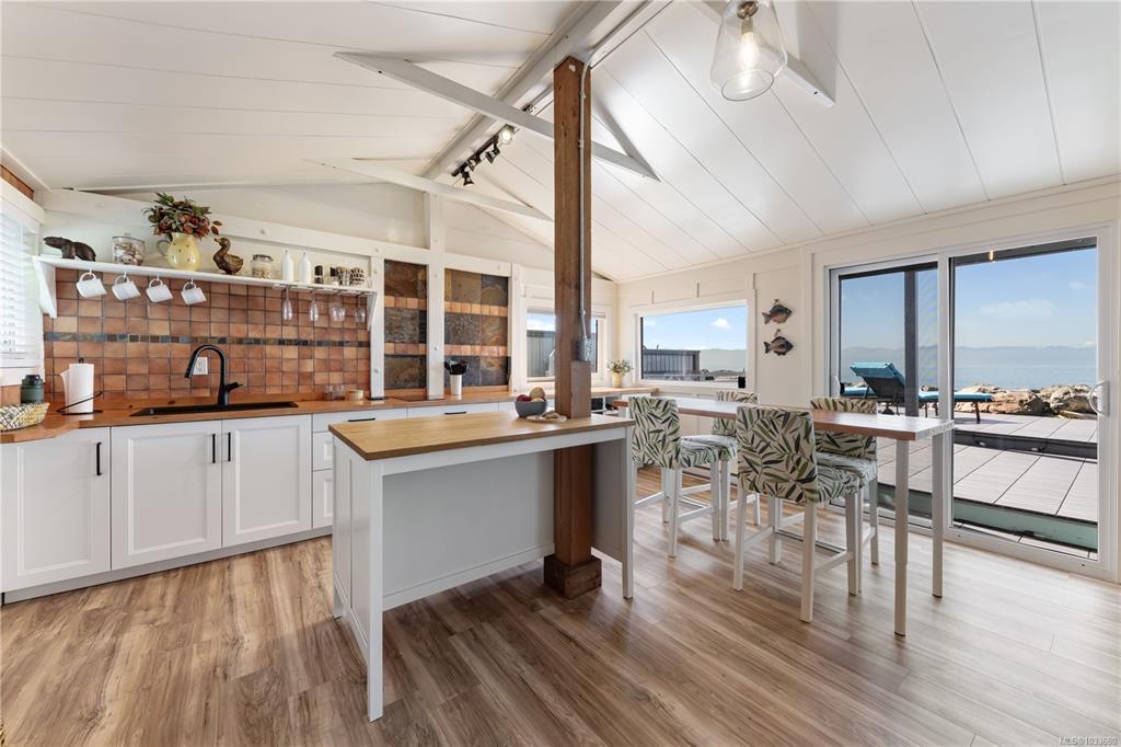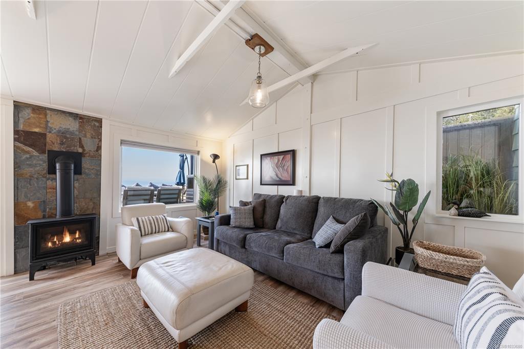 Fall asleep to ocean waves and wake to sea lions and whales. Welcome to a unique Oceanfront property with a million dollar view, just steps from the shore, this cozy 1-bedroom + den cabin offers the perfect West Coast escape or year-round home. A flexible layout allows potential for a 2-bedroom setup, while numerous upgrades over the past two years add comfort and value with room for more. Stay warm by the propane fireplace or enjoy sunrise coffee and sunset wine with stunning southern views across the Strait of Juan de Fuca. Located in a unique Tugwell Creek co-op community just 10 minutes from Sooke, you’re surrounded by wildlife, hiking trails, and private beach access. Parking for two vehicles or an RV included, plus space to relax and entertain outdoors. Whether it’s summer beach days or winter storm watching, this is coastal living at its best.