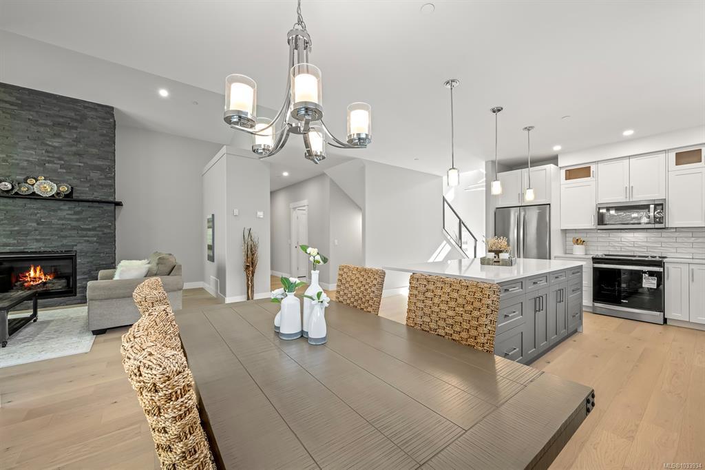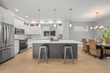 such as engineered hardwood, quartz countertops, and a heat pump for year-round comfort.
