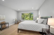 primary bedroom is a private retreat with a spa-like ensuite, featuring a soaker tub, tiled shower, and
