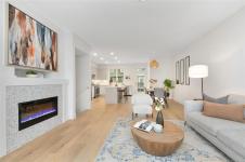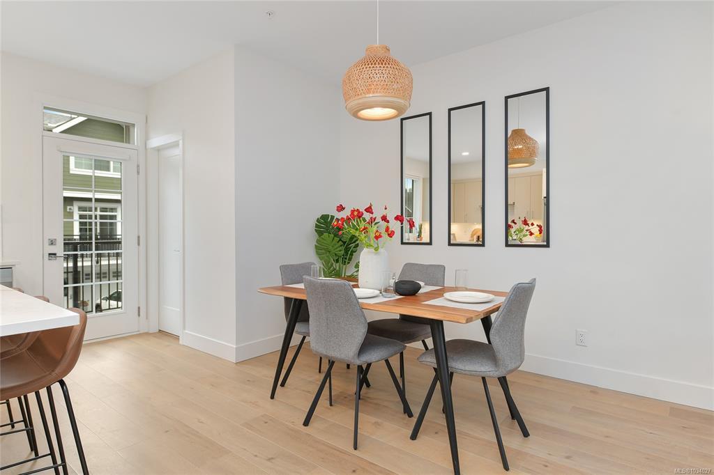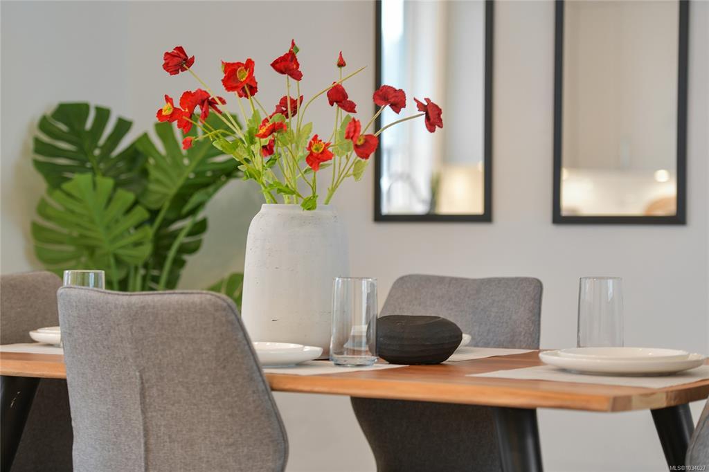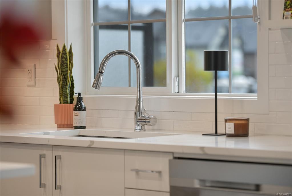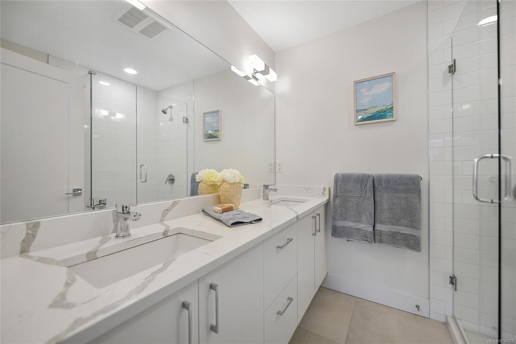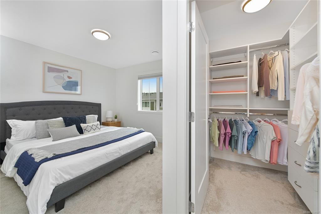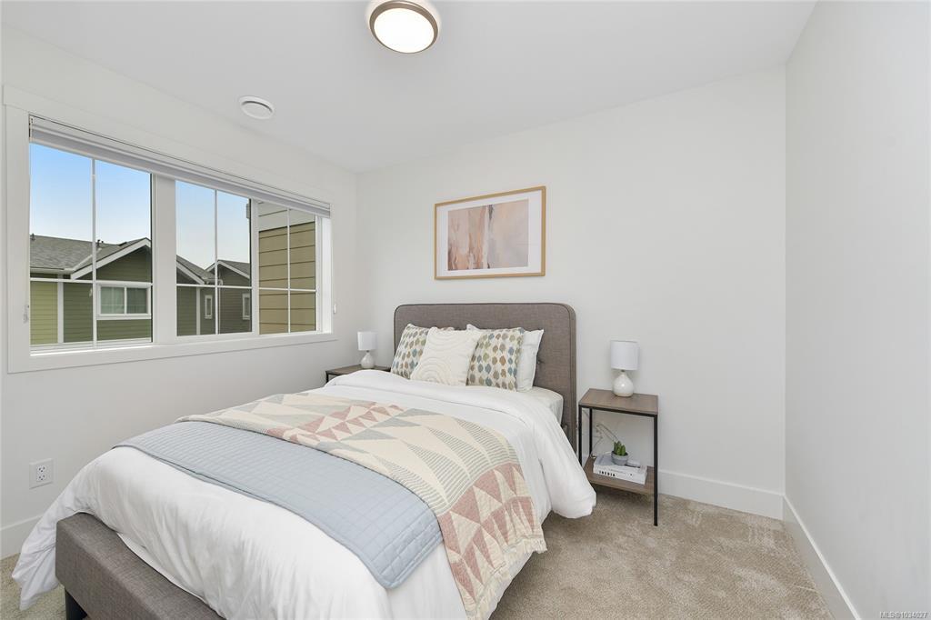 Welcome to Royal Bay, a vibrant seaside community offering the perfect blend of lifestyle and convenience. This bright and spacious home features an open-concept “great room” design with 9-foot ceilings, large picture windows, and sun-filled living and dining areas. The modern kitchen is beautifully appointed with quartz countertops, a center island, undermount sink, tiled backsplash, stainless steel appliances, gas stove, and a walk-in pantry. Upstairs, the primary bedroom includes a custom walk-in closet and a stylish ensuite with quartz counters, tiled flooring, and a glass-framed shower, plus two additional bedrooms. A lower-level office adds flexibility for work or study, along with a double garage. Enjoy low monthly expenses with reasonable strata fees, a high-efficiency natural gas furnace, and tankless hot water. Located just steps to Meadow Park Playground, scenic trails, beaches, and the retail village.