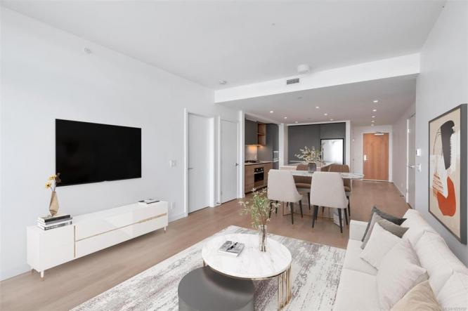 Experience Elevated Living in the Sky at Dockside Green by BOSA. This stunning 2-bedroom, 2-bathroom sub-penthouse offers panoramic views of the city skyline, ocean, and mountains — all from your expansive 179 sq ft balcony. Inside, the open-concept layout features a gourmet kitchen with a quartz island, gas range, and custom cabinetry — ideal for both daily living and entertaining.…