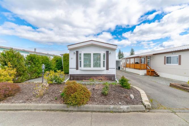 3-bedroom, 1-bathroom double wide on its own land—no pad fees, just a small $15 a month strata fee! Bright open-concept kitchen with ample storage and functional layout. Recent updates include a heat pump and newer windows for improved comfort and efficiency. Home features a metal roof and a large covered deck, perfect for year-round enjoyment and has a peak-a-boo ocean…