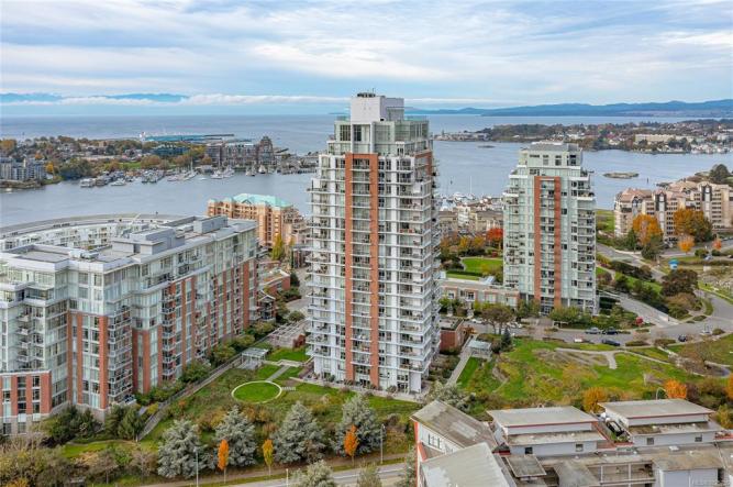 “Promontory” by Bosa where luxury & comfort come together. This well appointed condo offers designed living spaces, perfect for those seeking an urban lifestyle. The kitchen has high-end appliances incl. a gas cooktop, integrated Miele fridge/freezer, TV hook up & a stacking washer/dryer. Enjoy views of downtown & Inner Harbour from your private balcony, living room & bedroom. A generous…