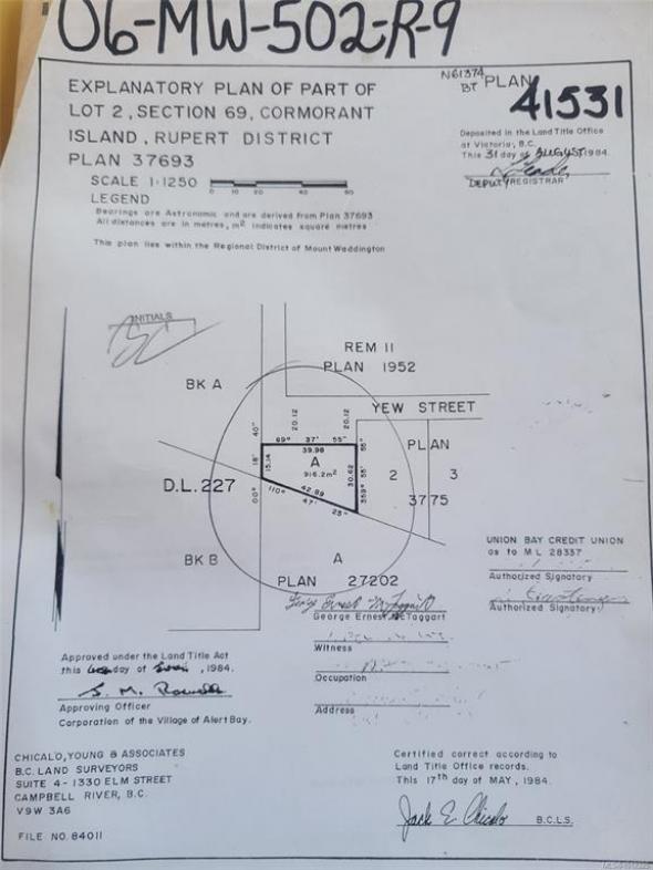 Escape to the natural beauty of Alert Bay with this charming .226-acre wooded lot. Nestled among mature trees and just moments from the ocean, this property offers a peaceful backdrop for your vision—whether it’s a private getaway, vacation retreat, or full-time island home. Embrace the calm, coastal lifestyle that only Alert Bay can offer.
